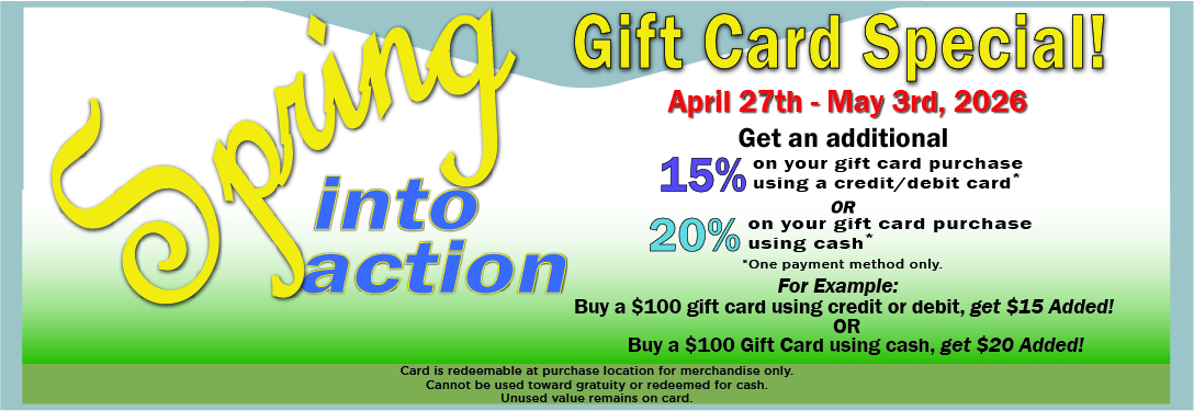 Sign up to receive exclusive specials and announcements.